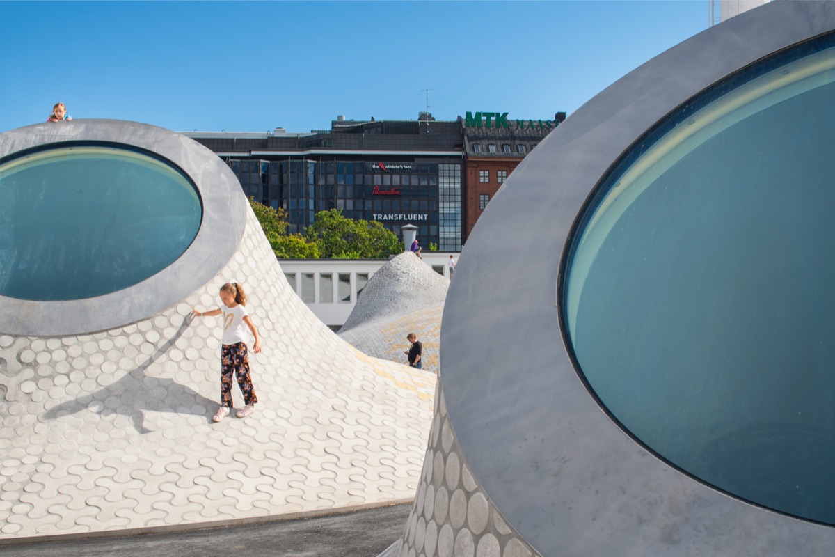 Mit 2.170 m² flexibler Ausstellungsfläche bietet das Amos Rex viel Platz für wechselnde Kunstausstellungen. Die Halle liegt unterirdisch und ist direkt über dem Kino Bio Rex zentral in Helsinki gelegen.