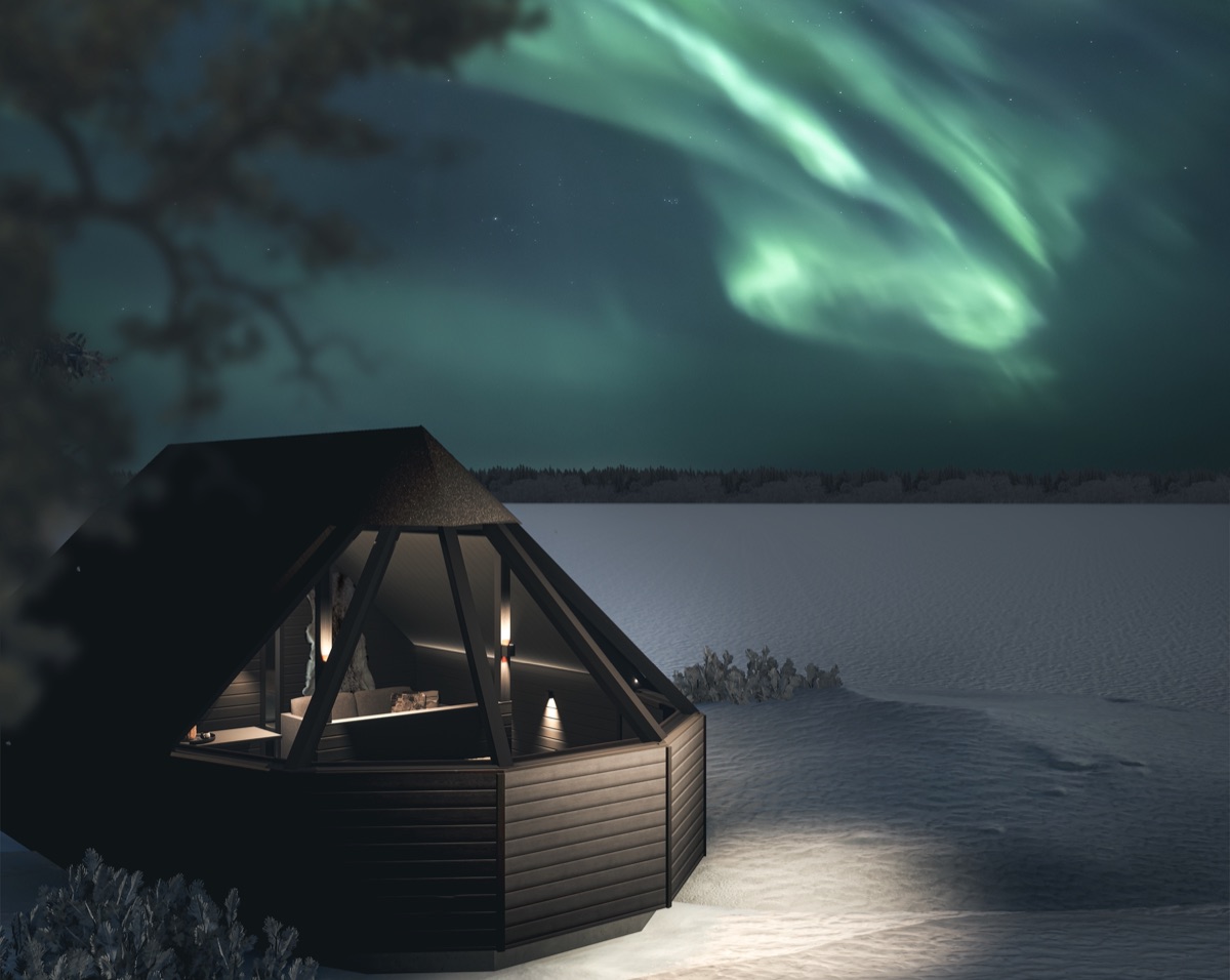 Das Nordlicht-Resort nahe dem Heimatort des Weihnachtsmannes begeistert mit traumhaften Übernachtungsmöglichkeiten, bei denen das Nordlicht die Hauptrolle spielt