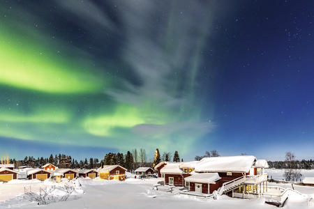 Lage: Die Lodge befindet sich im kleinen Ort Kangos in schwedisch Lappland, ca. 120 km nördlich des Polarkreises. Die Grenze zu Finnland befindet sich ca. 50 km in östlicher Richtung. Der schwedische Flughafen Kiruna ist ca. 140 km entfernt, der finnische Bahnhof Kolari etwa 100 km und der finnische Flughafen Kittilä etwa 170 km.