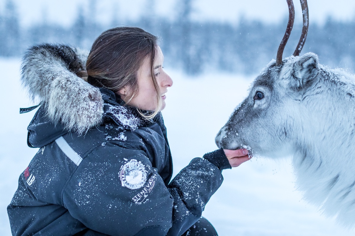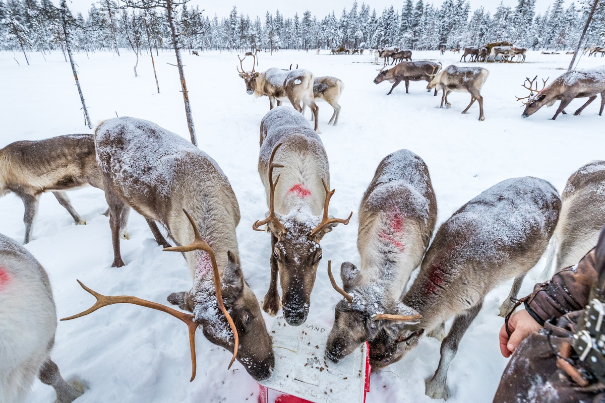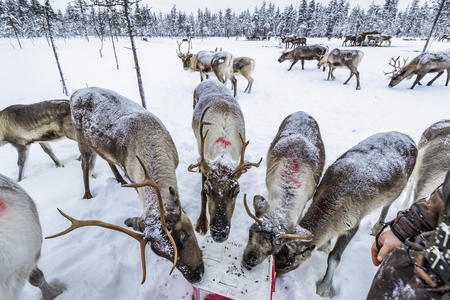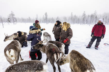 Rentierhaltung und -züchtung war und ist ein großer Teil der Tradition der Sami in Lappland. Auf dieser Rentiersafari kommen Sie den sonst so scheuen Tieren ganz nah. Mit Motorschlitten oder dem Minibus machen Sie sich auf den Weg zum Rentierhalter mit seiner Herde, welche sich frei im Wald bewegen kann. Der Besitzer der Rentiere berichtet Ihnen von seinem Leben mit den Tieren und mit etwas Glück und Futter kommen Ihnen die Tiere ganz nahe, so dass Sie viele schöne Fotos machen können. An diesem idyllischen Ort nehmen Sie sich dann noch Zeit für ein Mittagessen am Lagerfeuer, so wie es auch die Sami seit Jahrhunderten tun.