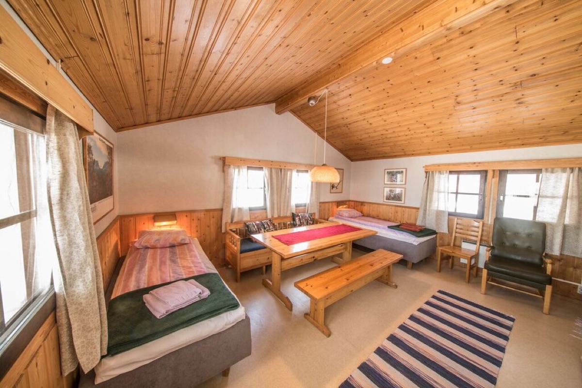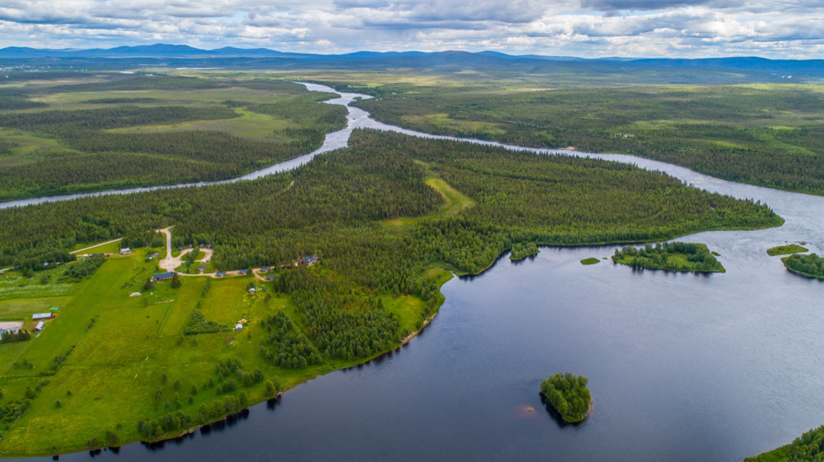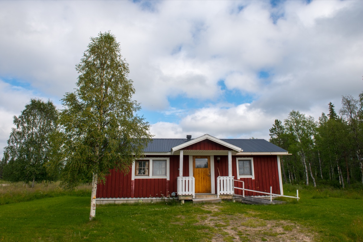 Lage: Auf einer Insel am Grenzfluss Muonio. Der Fluss verbindet Finnland mit Schweden. 200 km nördlich des Polarkreises. Der nächstgelegene Flughafen Kittilä ist ca. 90 km entfernt.