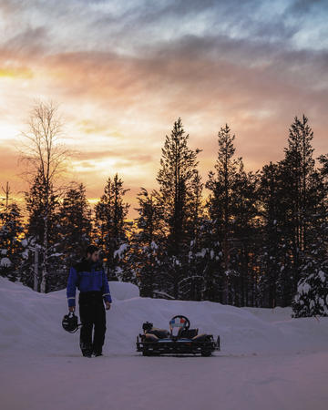 Noch nicht genug Abenteuer? Es erwartet Sie ein Eiskart-Rennen! Ein großer Spaß für alle PS-Fans: In speziellen Winterkarts fahren Sie auf eisigem Gelände. Nach einem Qualifikationsrennen erfahren Sie Ihre Rundenzeiten und können sich bei Ihrem Guide noch Tipps für das Rennen holen. Dann wird es ernst und das Rennen beginnt und es zeigt sich, wer am besten mit dem eisigen Untergrund umgehen kann und das Rennen für sich entscheidet.