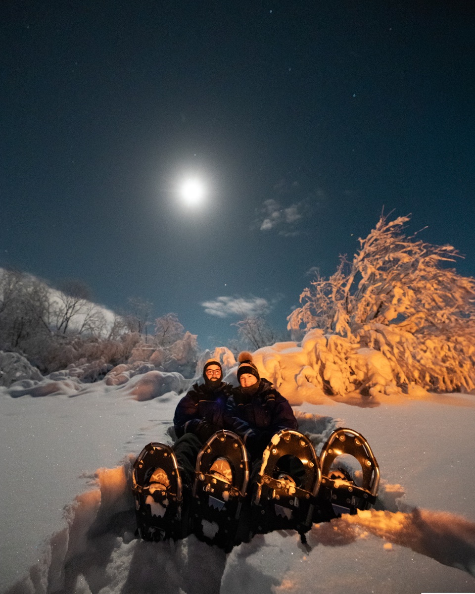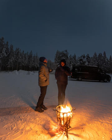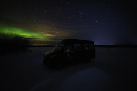 Abends gehen Sie per Minibus auf Nordlichtjagd. Nach sorgfältiger Analyse der Wetter- und Himmelsbedingungen begeben Sie sich mit dem Minibus zu den Orten, an denen die Wahrscheinlichkeit, die Nordlichter zu sehen, am größten ist. Ihr erfahrener Guide – ein professioneller Aurora Hunter – teilt unterwegs spannende Geschichten und Hintergrundwissen über dieses Naturphänomen. Heiße Getränke und Snacks sorgen für Wärme und Energie während der Tour. Im Anschluss erhalten Sie einen Link zu den während der Safari aufgenommenen Fotos.