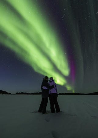 Für Honeymooner und alle Verliebten: Nordlichter vom eigenen Bett aus beobachten! Unterkunft mit Panorama-Glas-Dach, Rentiere hautnah und ein bisschen Action!