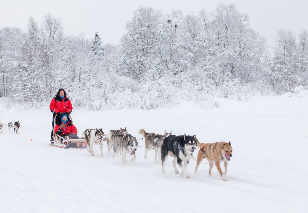 Heute wird es auf andere Art rasanter: Es wartet eine ca. 2-stündige Huskysafari auf Sie! Es ist einfach faszinierend, mit welchem Elan und Freude die Hunde mit Ihnen durch die Winterlandschaft düsen.