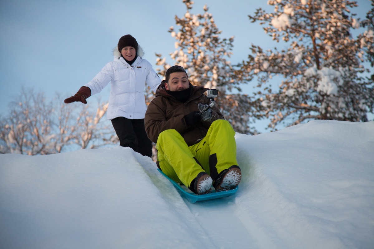 Tagsüber erkunden Sie die umliegende Region per Husky- oder Rentierschlitten, Schneemobil oder beim Eis-Karting. Nachts können Sie direkt von Ihrem Bett aus auf Nordlicht-Jagd gehen - einfach fabelhaft!