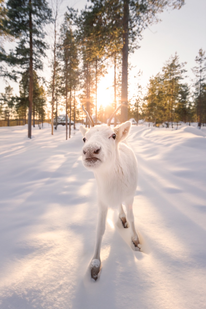 Mehrere Hundert Kilometer nördlich des Polarkreises befindet sich der Ort Ivalo und diese besondere Unterkunft. Sie wohnen in Blockhütten, die über ein beheiztes Panorama-Glasdach verfügen und um ein privates Rentier-Gehege herum angeordnet sind. Hier kommen Sie ihnen ganz nah!