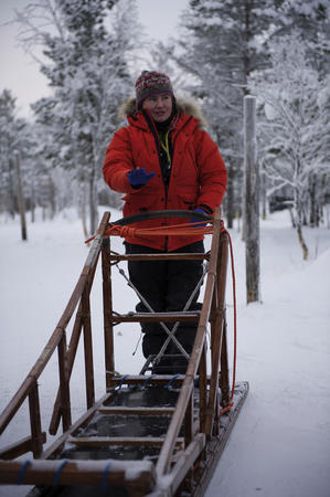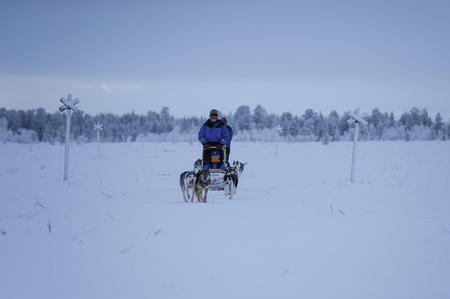 Heute packen Sie das Nötigste für die bevorstehende Nacht in der Wildnis und fahren nach Posio, zu Lauri und seinen rund 80 Huskies. Nach dem Kennenlernen der Hunde und einer Einführung ins Mushen – das fachgerechte Steuern eines Hundeschlittens – geht es los.