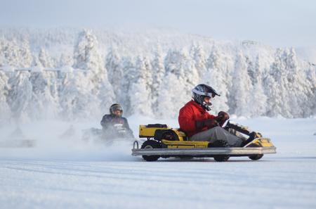 Am Nachmittag wartet auf Adrenalinliebhaber Ice-Karting auf einem speziell präparierten Outdoor-Eisparcours. Mit Spikereifen erleben Sie rasante Rennen, bei denen Technik und Geschick wichtiger sind als Geschwindigkeit – ein Schleudergang auf dem Eis bleibt nie aus! Nach Aufwärm- und Qualifikationsrunden geht es ins Finale: Wer zuerst die Ziellinie überquert, gewinnt. Die Karts sind leistungsstärker als herkömmliche Indoorkarts und sorgen für puren Fahrspaß.