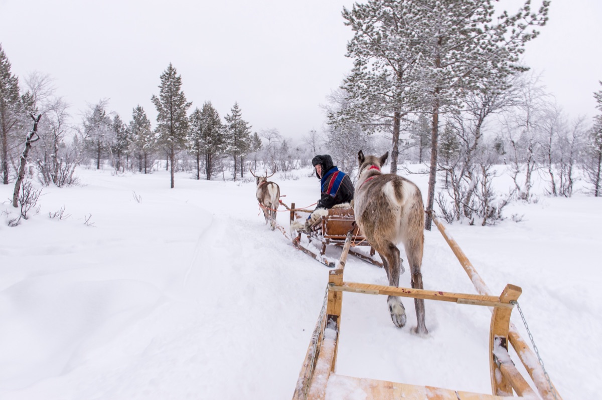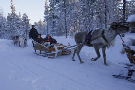 Auf Wunsch unternehmen Sie einen Ausflug zur traditionellen Rentierfarm. Unter fachkundiger Anleitung dürfen Sie selbst einen Rentierschlitten lenken und gleiten auf einer rund 1,5 km langen Strecke durch den verschneiten Wald – ein einmaliges Erlebnis inmitten stiller Winterlandschaft.