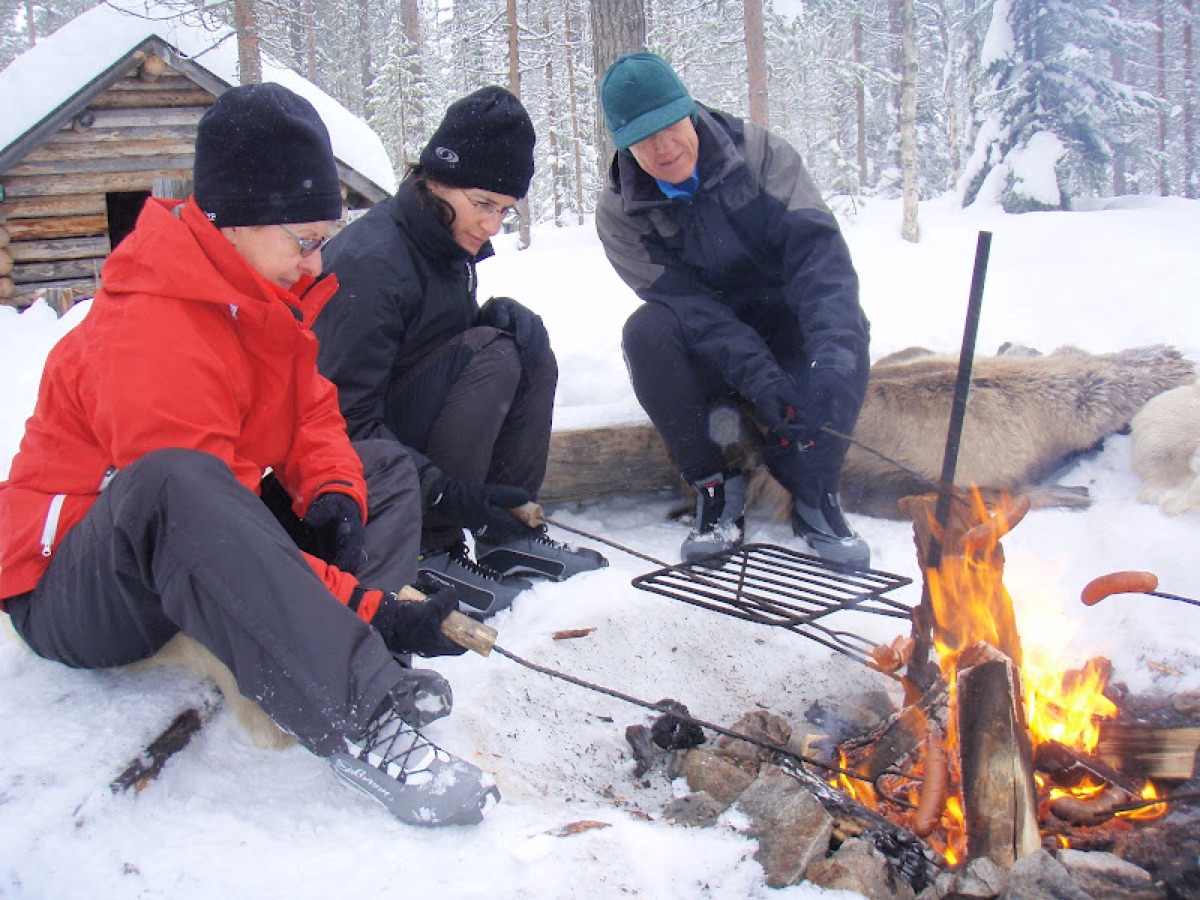 Vier Tage voller Abenteuer in der Wildnis warten auf Sie. Sie ziehen ihren eigenen Schlitten, der mit der gesamten Ausrüstung und Verpflegung für die kommenden Tage in der Wildnis beladen ist. Die Nächte verbringen Sie gemeinsam in einem großen beheizten Tipi oder in Unterständen am Feuer. Gemeinsam mit dem Guide und den anderen Gruppenmitgliedern bauen Sie das Lager auf, sammeln Feuerholz im Wald, holen Wasser aus Flüssen oder schmelzen Schnee. Alle beteiligen sich auch an den Vorbereitungen zu den gemeinsamen Mahlzeiten, die am offenen Feuer zubereitet werden. r Sie werden sehen: ein Abendessen unter Sternenhimmel schmeckt fast so gut wie im Sterne-restaurant. Die Abende verbringen Sie typisch finnisch am Lagerfeuer mit Gesprächen und dem Blick in die flackernden Flammen. Und mit etwas Glück tanzen bei hereinbrechender Dunkelheit auch noch ein paar Nordlichter am Himmel.