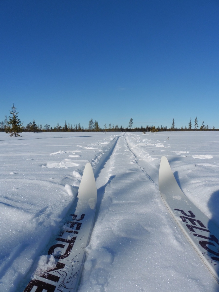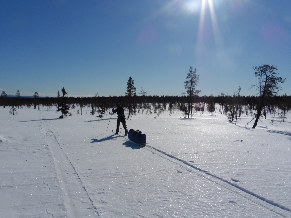 Sie werden täglich ca. 6 Stunden Skifahren, dabei richtet sich die Distanz stark nach den jeweiligen Schnee- und Wetterbedingungen und auch den Fähigkeiten der Teilnehmenden. Die täglichen Abläufe nehmen viel Zeit in Anspruch und Skifahren mit Schlitten lässt nur ein gemächliches Tempo zu. Ihr Guide kennt sich gut aus und wird die Route je nach Gruppe und Wetterbedingungen anpassen können. Sie fahren übrigens auf traditionellen finnischen Waldskiern, die in Breite und Länge perfekt für die Fortbewegung im Winterwald angepasst sind.