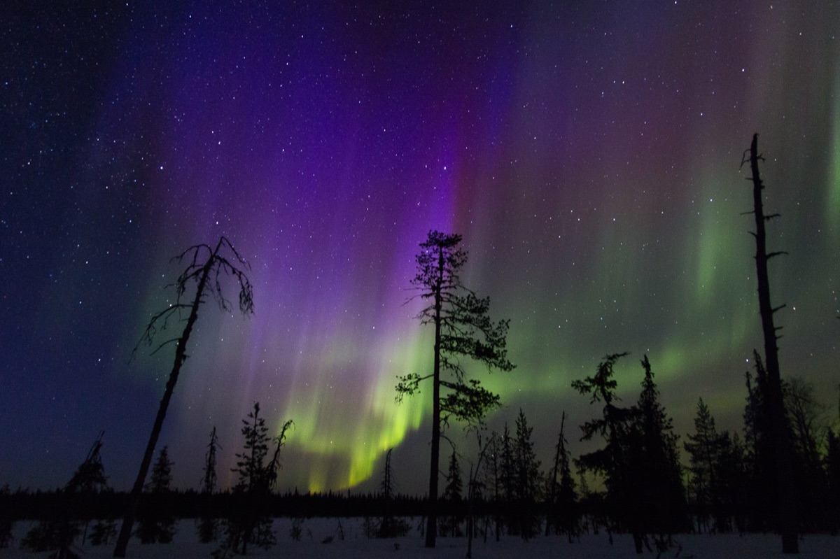 Diese Skitourenwoche ist für alle, die abseits der Pfade unterwegs sein wollen. Sie fahren auf unpräparierten Wegen durch Wälder, Sümpfe und Seen und ziehen Ihren eigenen Schlitten. Beim Zelten in der winterlichen Wildnis werden Sie sicherlich Ihren persönlichen "inneren Überlebenskünstler" finden! Gemeinsam mit den anderen Mitgliedern der kleinen maximal 6-köpfigen Expeditionsgruppe und Ihrem erfahrenen Guide bauen Sie die Zelte auf, sammeln Feuerholz und bereiten die Mahlzeiten am offenen Feuer zu. Die Abende verbringen Sie auf finnische Art und Weise - mit Gesprächen am Feuer und dem Blick in die Flammen. Wenn die Dunkelheit hereinbricht, vergessen Sie nicht, einen Blick in den Himmel zu werfen - mit etwas Glück können Sie den Tanz der Nordlichter beobachten.