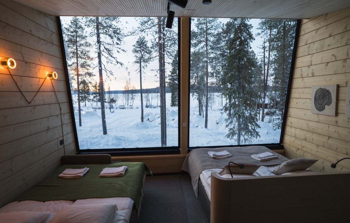 Einrichtungen: Zum Resort gehören das Hauptgebäude mit Rezeption, ein Restaurant mit regionaler lappländischer Küche sowie eine gemütliche Bar mit Kamin. Zusätzlich gibt es einen Pub im Untergeschoss. WLAN steht im Hauptgebäude zur Verfügung. Ein besonderes Highlight ist die arktische Saunawelt direkt am See. Hier erwarten Sie mehrere unterschiedliche Saunen sowie Ruheräume mit Blick auf die Natur. Im Sommer können Sie nach dem Saunagang direkt im Jerissee baden oder auf der Terrasse entspannen. Außerdem werden verschiedene Wellness- und Massageanwendungen angeboten.