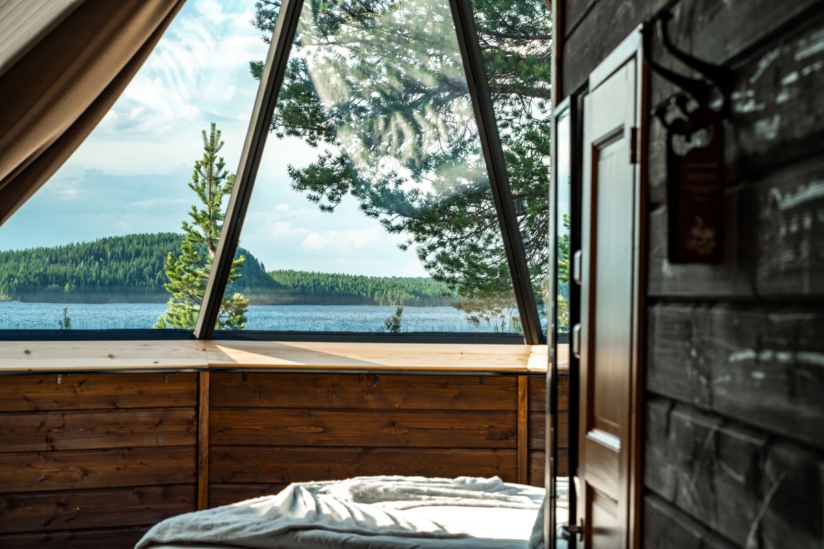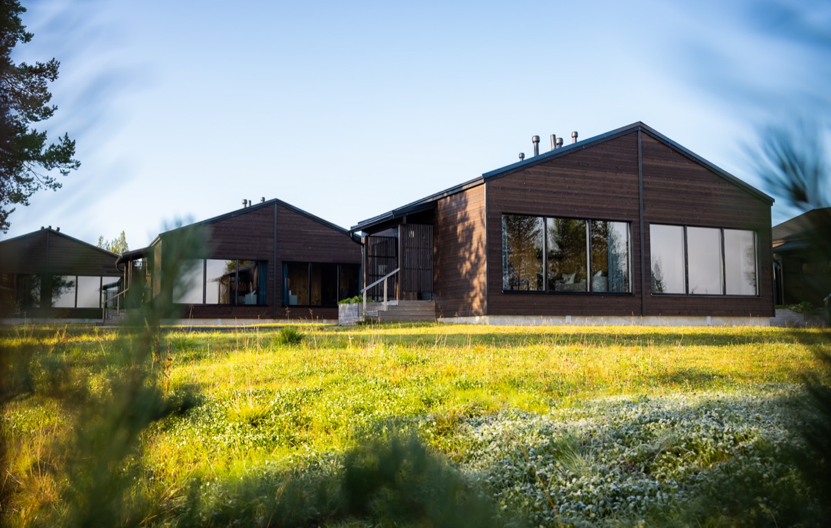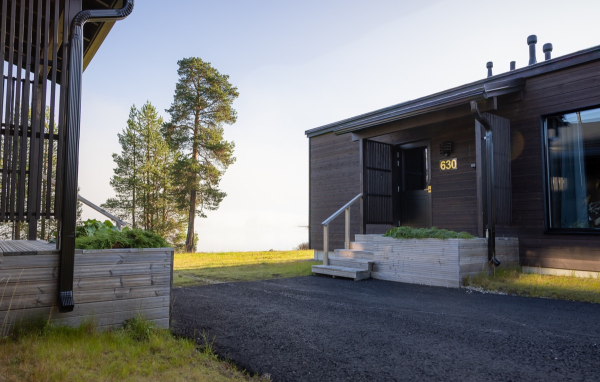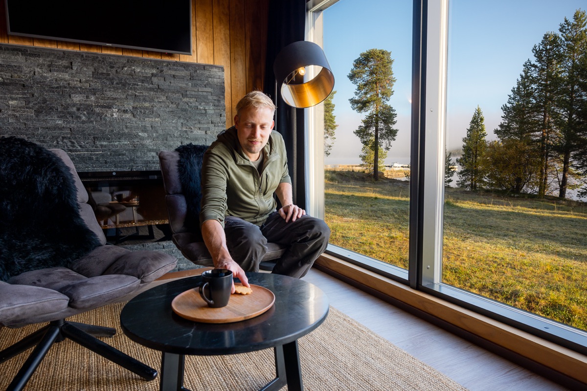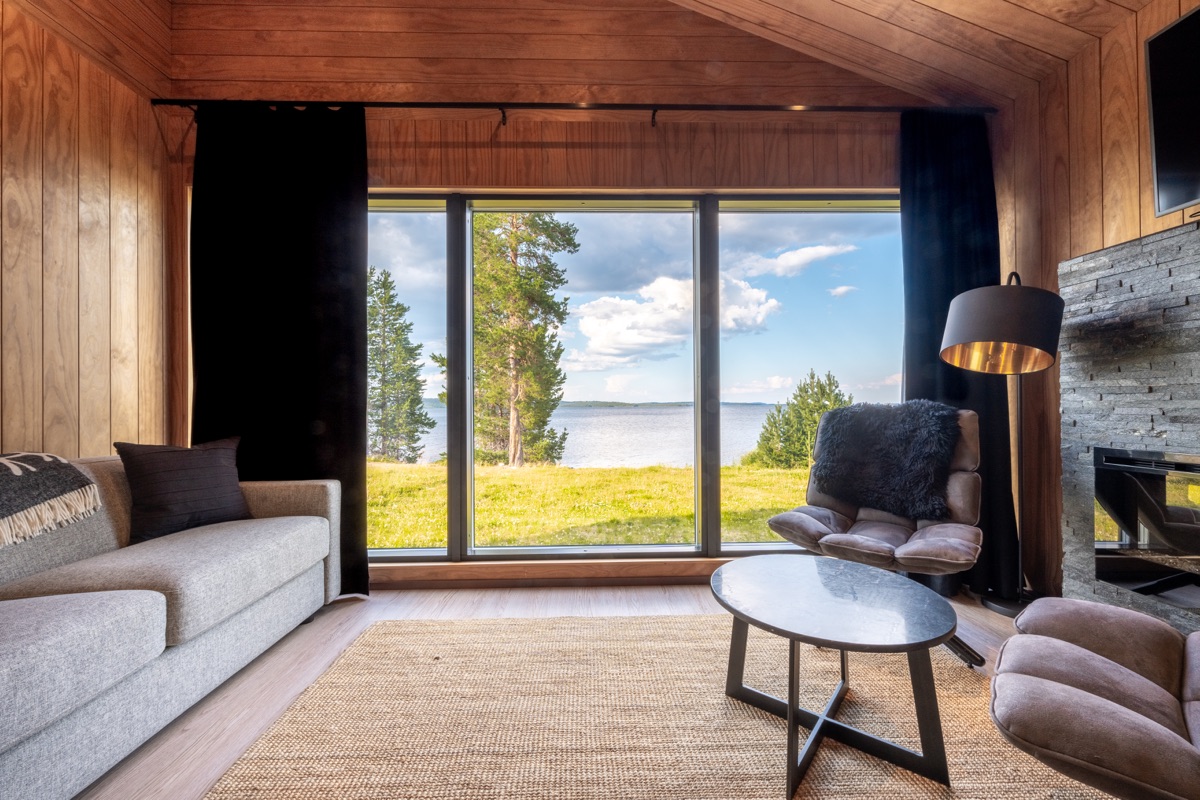 Ausstattung: Im Hauptgebäude befinden sich Rezeption, Lounge mit Kamin, gemütliche Bar und ein Restaurant mit großer Fensterfront zum See. Das Restaurant bietet finnische Küche mit regionalen Zutaten in Buffetform (geöffnet 8–20 Uhr). Eine Glasiglu-Sauna sorgt für Entspannung nach einem aktiven Tag in der Natur.